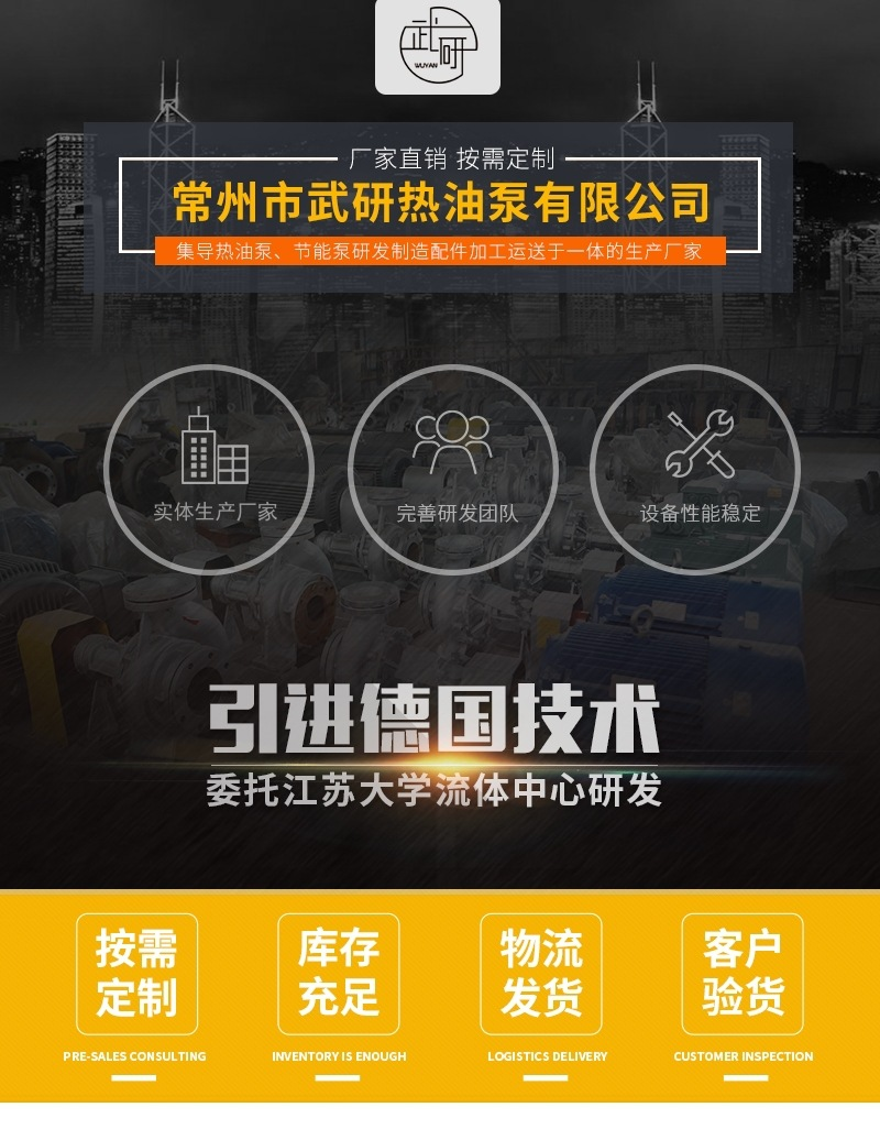 常州市武研熱油泵有限公司是熱油泵設(shè)計(jì)制造公司,以設(shè)計(jì)、制造、銷售WRY型系列高溫離心式熱油泵(亦稱導(dǎo)熱油泵)、節(jié)能泵、柴油機(jī)泵、不銹鋼耐腐蝕化工泵四大類產(chǎn)品為一體的泵類,并遠(yuǎn)銷東南亞地區(qū)。